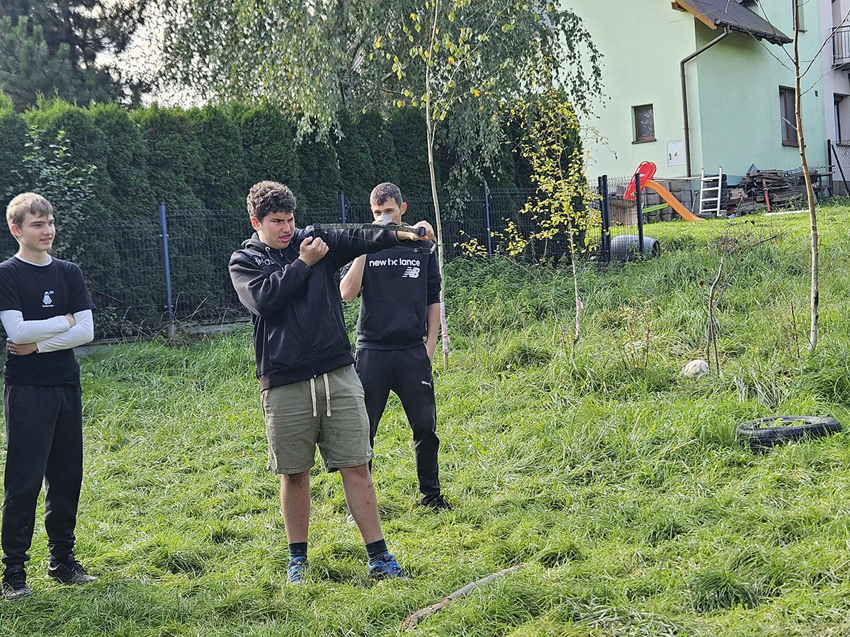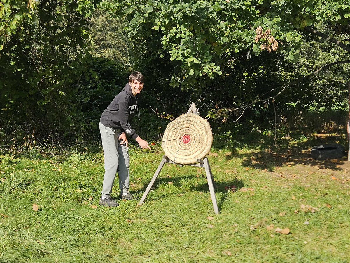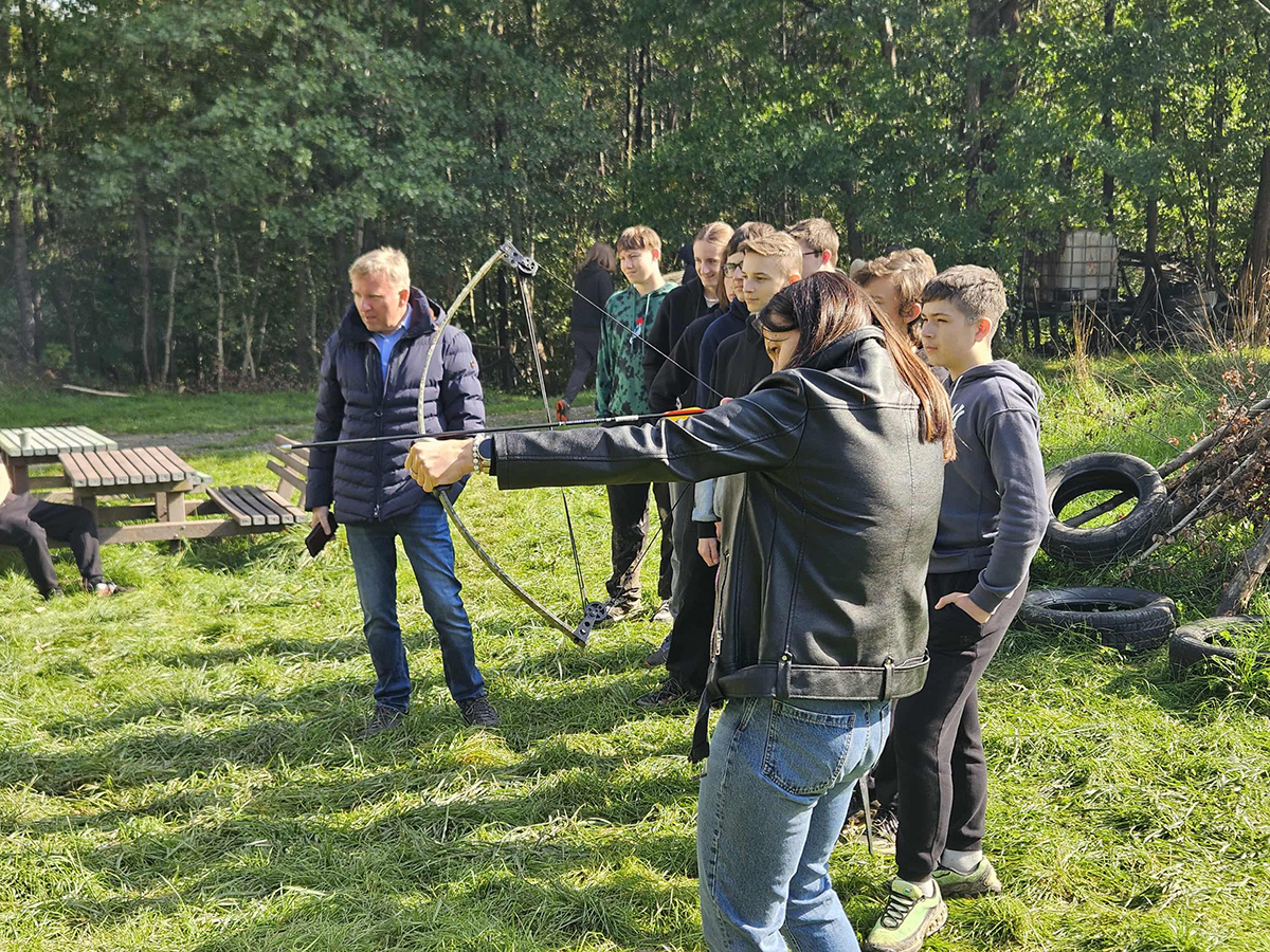 Po zakończeniu gry piekliśmy kiełbaski i rywalizowaliśmy ze sobą podczas strzelania z łuku. Nawet nasza pani wychowawczyni trafiła w środek tarczy ;) …no prawie w środek. Później czekały na nas jeszcze inne aktywności sportowe i Quizy.