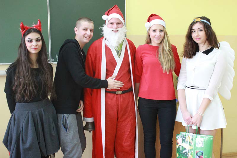 W poniedziałek 7 grudnia br. naszą szkołę odwiedził św. Mikołaj. Na lekcji 4, 5 i 6 przedstawiciele Samorządu Uczniowskiego odwiedzili wszystkie klasy rozdając słodkie upominki. Dodatkowo w tym dniu wszyscy, którzy przebrali się za postać związaną z tradycją bożonarodzeniową byli zwolnieni z przygotowania bieżącego.
