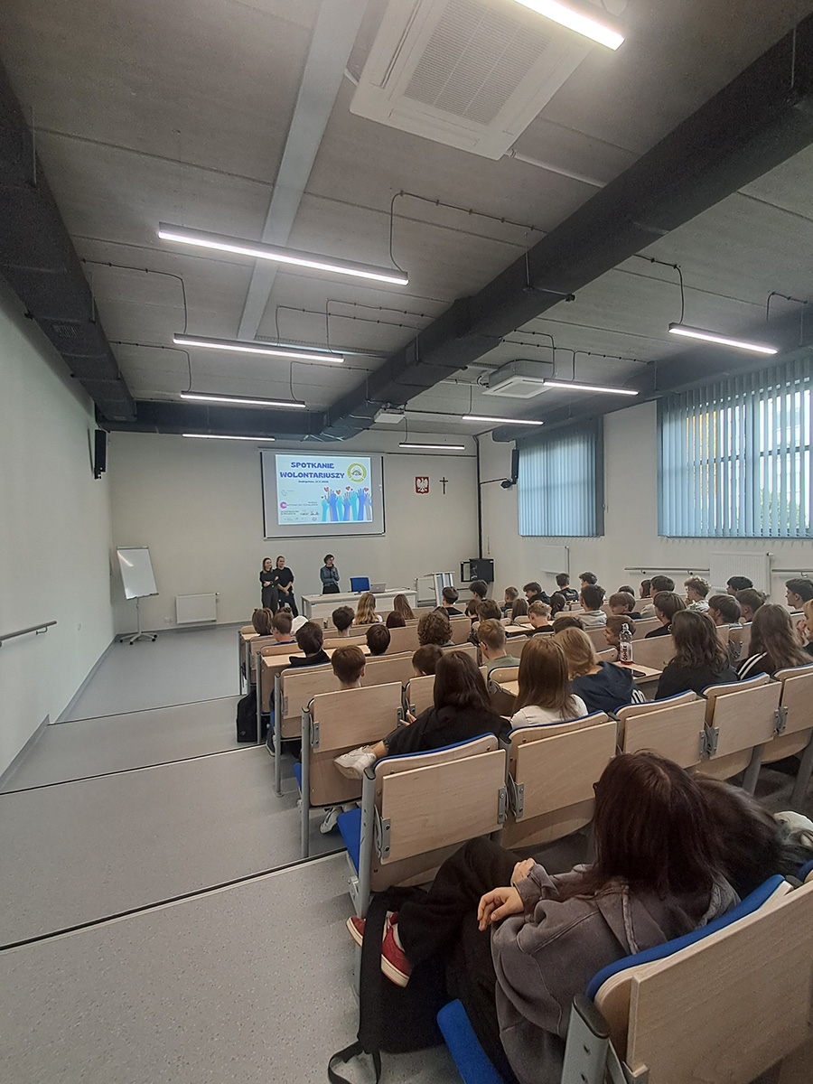 W dniu 21 października 2025 roku nasza piękna aula wypełniła się po brzegi młodymi ludźmi, którzy pragną dać z siebie coś więcej. Mowa oczywiście o naszych wolontariuszach oraz tych, którzy dopiero chcą nimi zostać.