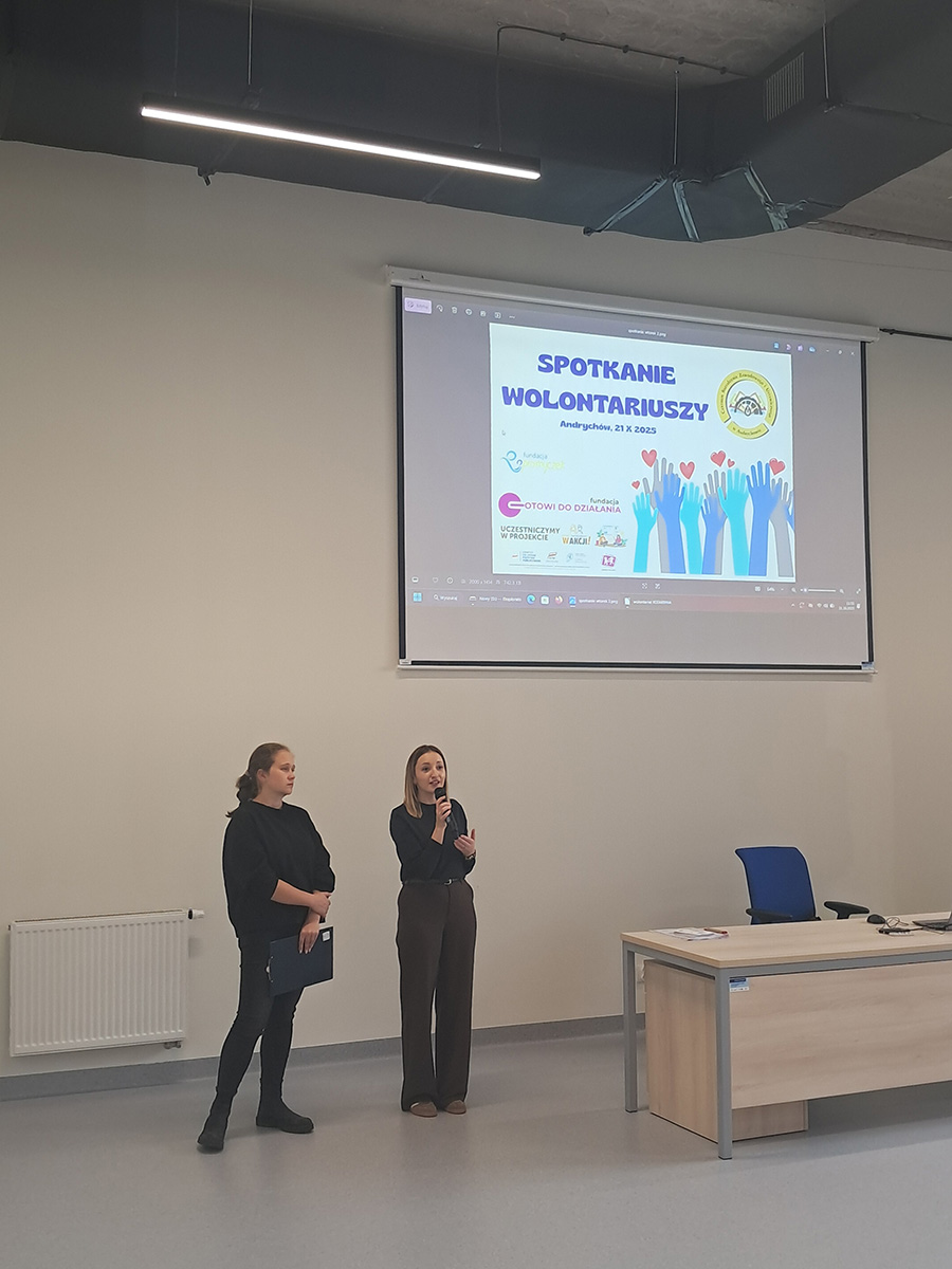 Na wydarzenie zaprosiliśmy również przedstawicielki Fundacji „Promyczek”, która od wielu lat aktywnie działa na terenie Andrychowa i z którą nasza szkoła współpracuje. Panie Kamila Łabudek i Marta Wilk-Kropacz przybliżyły uczestnikom główne kierunki działalności fundacji oraz opowiedziały o projektach, w które mogą włączyć się uczniowie.