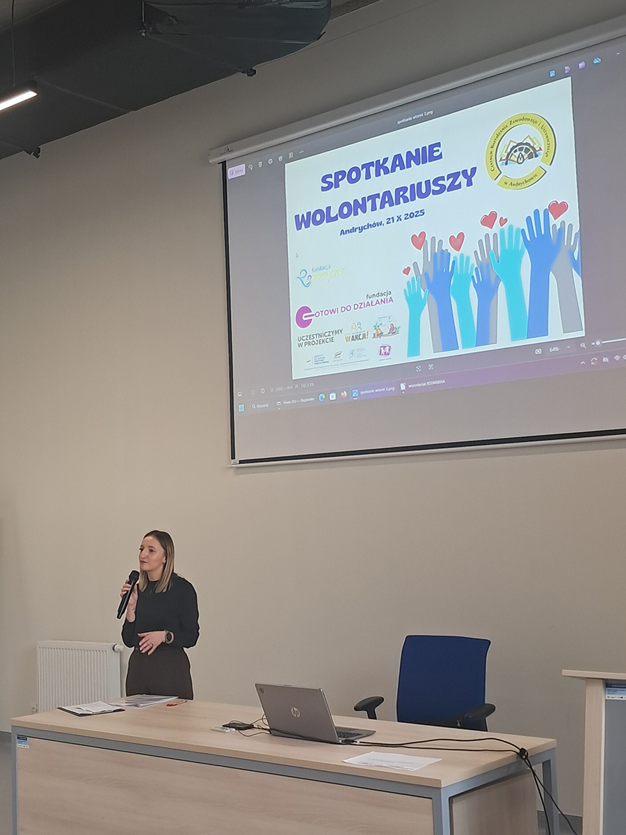 Młodzież dowiedziała się, że wolontariat to nie tylko pomoc innym, ale także ogromna szansa na rozwój osobisty, zdobycie cennego doświadczenia i nawiązanie trwałych przyjaźni. Uczniowie zostali również poinformowani o powstaniu Centrum Wolontariatu przy ul. Starowiejskiej 22b, tuż obok naszej szkoły. Działania tej instytucji obejmą teren powiatu wadowickiego i oświęcimskiego.